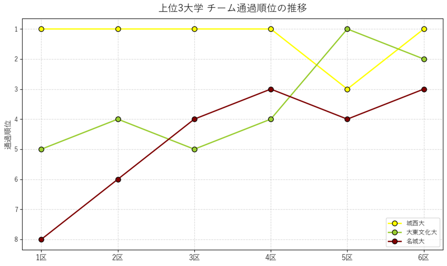 見事優勝を果たした城西大学、準優勝の大東文化大学、第3位の名城大学について振り返っていきたいと思います。